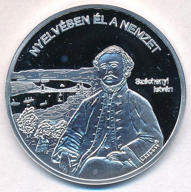 DN "Nemzetünk Nagyjai - "Nyelvében él a nemzet" - Széchenyi István / Isten áldd meg a magyart!" Ag emlékérem tanúsítvánnyal (10,37g/0.999/35mm) T:PP fo.