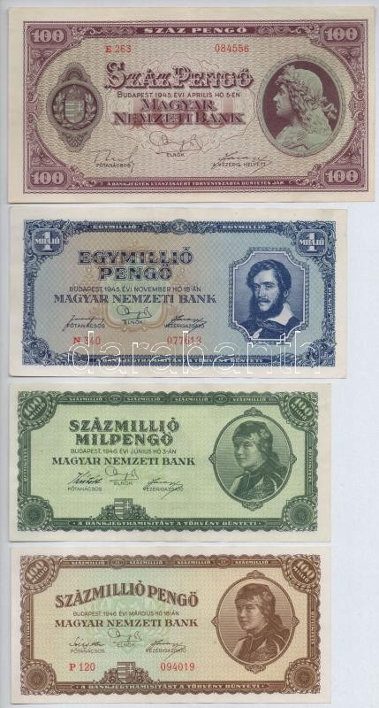 1945. 100P + 1.000.000P + 1946. 100.000.000P + 100.000.000MP T:II,II-,... https://www.darabanth.com/de/301-Fernauktion/301.0/Numismatik/Ungarische-Banknoten~300007/1945-100P-plus-1000000P-plus-1946-100000000P-plus-100000000MP-TII-II-III~II1612268