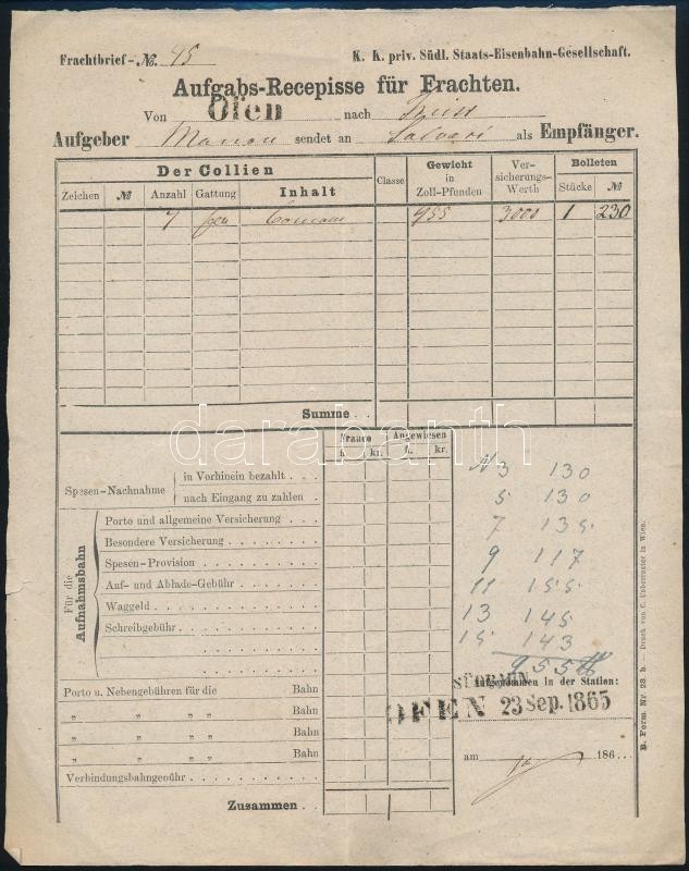 1865 Buda, Aufgabs-Recepisse, német nyelvű feladóvevény https://www.darabanth.com/de/302-Fernauktion/302.0/Andere-Sammelgebiete/Dokument~17/1865-Buda-Aufgabs-Recepisse-nemet-nyelvu-feladoveveny~II1621122