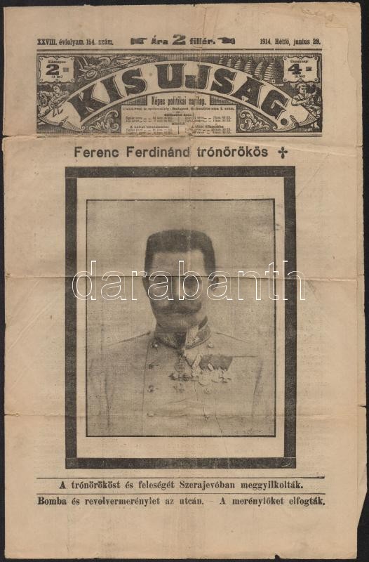 1914 Kis Ujság június 29-i száma, benne Ferenc Ferdinánd gyászjelentés... https://www.darabanth.com/de/302-Fernauktion/302.0/Andere-Sammelgebiete/Drucksachen~28/1914-Kis-Ujsag-junius-29-i-szama-benne-Ferenc-Ferdinand-gyaszjelentese-es-beszamolo-a-szar~II1621513
