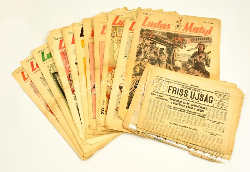 Beschreibung: 1932-1953 Vegyes újság tétel, összesen 16 db, közte Szededi Friss Újság, Népszava, Pesti Izé, Ludas Matyi, vegyes minőségben
