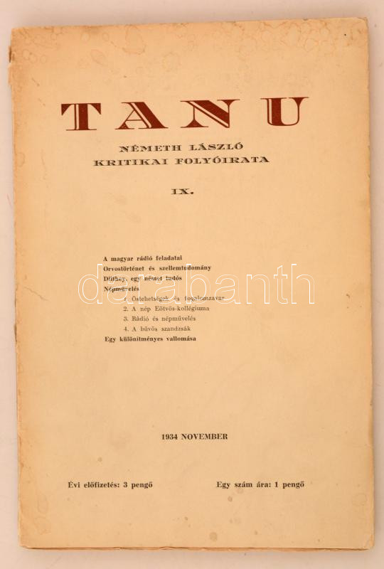 1934 Tanu IX. szám. Németh László kritikai folyóirata. Kecskemét, 1934... https://www.darabanth.com/de/302-Fernauktion/302.0/Andere-Sammelgebiete/Drucksachen~28/1934-Tanu-IX-szam-Nemeth-Laszlo-kritikai-folyoirata-Kecskemet-1934-Elso-Kecskemeti-Hirl~II1417318