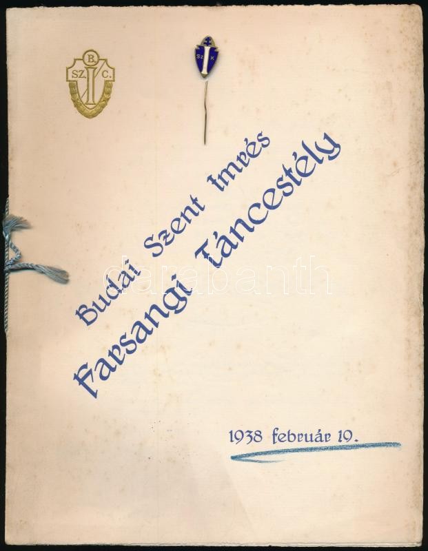 1938 Budai Szent Imrés farsangi táncestély műsorfüzet és zománcozott j... https://www.darabanth.com/de/302-Fernauktion/302.0/Andere-Sammelgebiete/Drucksachen~28/1938-Budai-Szent-Imres-farsangi-tancestely-musorfuzet-es-zomancozott-jelveny~II1622162