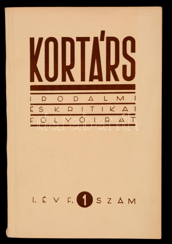 1957 Kortárs. Irodalmi és kritikai folyóirat. Szerkesztették Darvas József, és Tolnai Gábor. Budapest, 1957, 159 p. 1957 Szeptember, I. évfolyam 1. szám. Kiadói papírkötés.