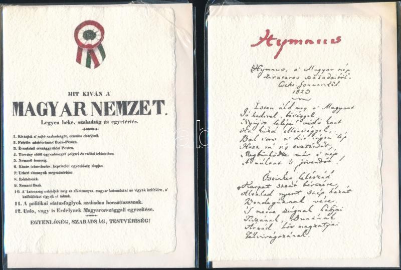 A Himnusz, és a Szózat, valamint 1848-as röplap facsimile levelezőlap ... https://www.darabanth.com/de/302-Fernauktion/302.0/Andere-Sammelgebiete/Drucksachen~28/A-Himnusz-es-a-Szozat-valamint-1848-as-roplap-facsimile-levelezolap-kiadasa-Vincze-Laszlo-~II1627053