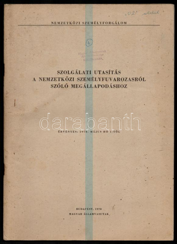 Szolgálati utasítás a nemzetközi személyfuvarozásról szóló megállapodá... https://www.darabanth.com/de/302-Fernauktion/302.0/Andere-Sammelgebiete/Drucksachen~28/Szolgalati-utasitas-a-nemzetkozi-szemelyfuvarozasrol-szolo-megallapodashoz-Bp-1978-Ma~II1514988