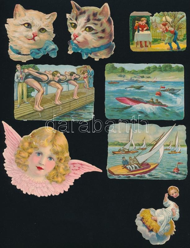 cca 1900-1920 8 db préselt litográf kép, macska, angyal, sport motívu... https://www.darabanth.com/de/302-Fernauktion/302.0/Andere-Sammelgebiete/Drucksachen~28/cca-1900-1920-8-db-preselt-litograf-kep-macska-angyal-sport-motivumokkal-az-egyik-serult-~II1622860