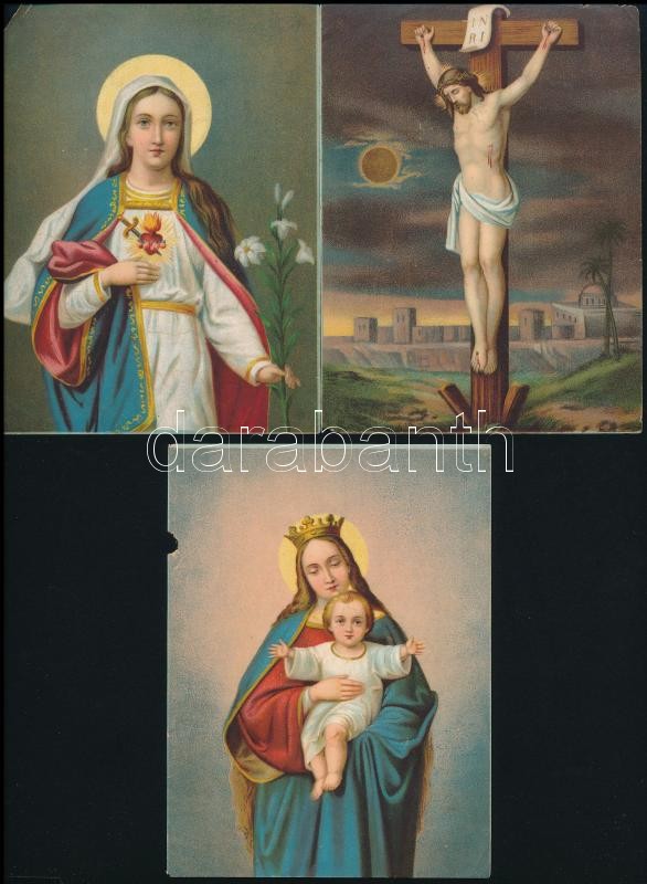 Beschreibung: cca 1910 3 db litho, szenteket ábrázoló kép, sérülésekkel, 14x11 cm