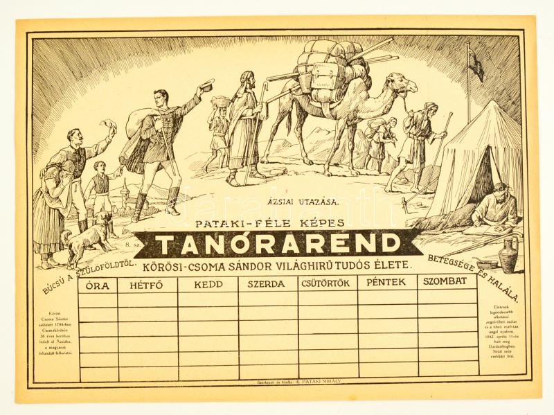 cca 1930 Használatlan Pataki féle tanórarend. Kőrösi Csoma Sándor kele... https://www.darabanth.com/de/302-Fernauktion/302.0/Andere-Sammelgebiete/Drucksachen~28/cca-1930-Hasznalatlan-Pataki-fele-tanorarend-Korosi-Csoma-Sandor-keleti-utazasa30x20-cm~II1625663