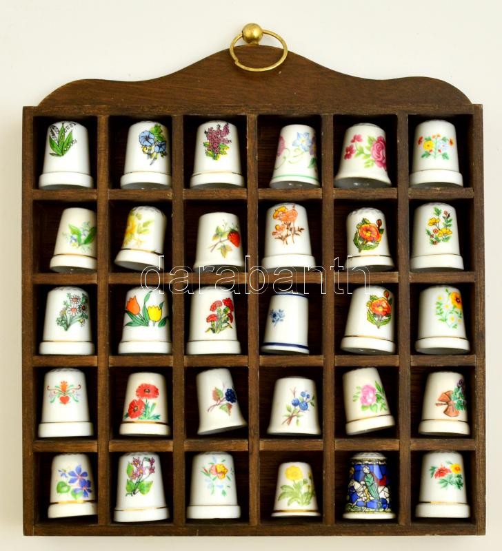 30 db-os porcelán gyűszű gyűjtemény, fa polcon, többön sérüléssel https://www.darabanth.com/de/302-Fernauktion/302.0/Andere-Sammelgebiete/Flohmarkt~12/30-db-os-porcelan-gyuszu-gyujtemeny-fa-polcon-tobbon-serulessel~II1626974