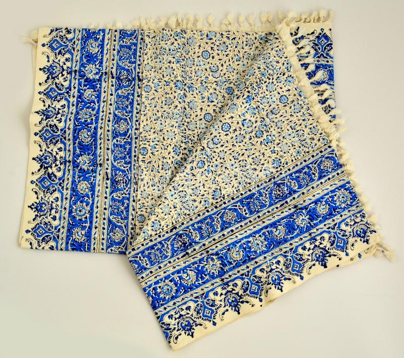Beschreibung: Kék színű gazdagon díszített modern perzsa asztalterítő, jelzett, 200×135 cm