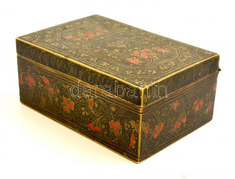 Keleti ornamentikus díszítésű réz dobozka, kézzel festett, 5x11x8 cm https://www.darabanth.com/de/302-Fernauktion/302.0/Andere-Sammelgebiete/Flohmarkt~12/Keleti-ornamentikus-diszitesu-rez-dobozka-kezzel-festett-5x11x8-cm~II1624311