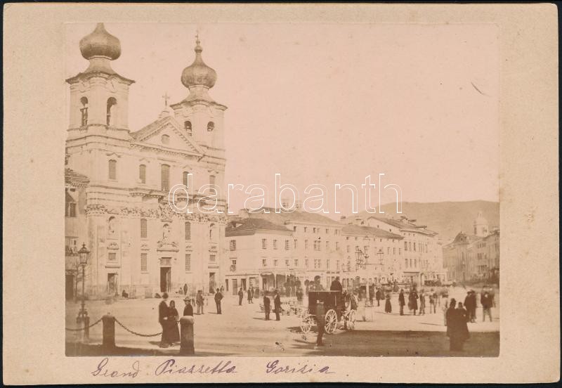 1886 Grand Piazzetta, Gorizia, Olaszország, feliratozott, keményhátú fotó, 11x16 cm / Grand Piazzetta, Gorizia, Italy, vintage photo, 11x16 cm