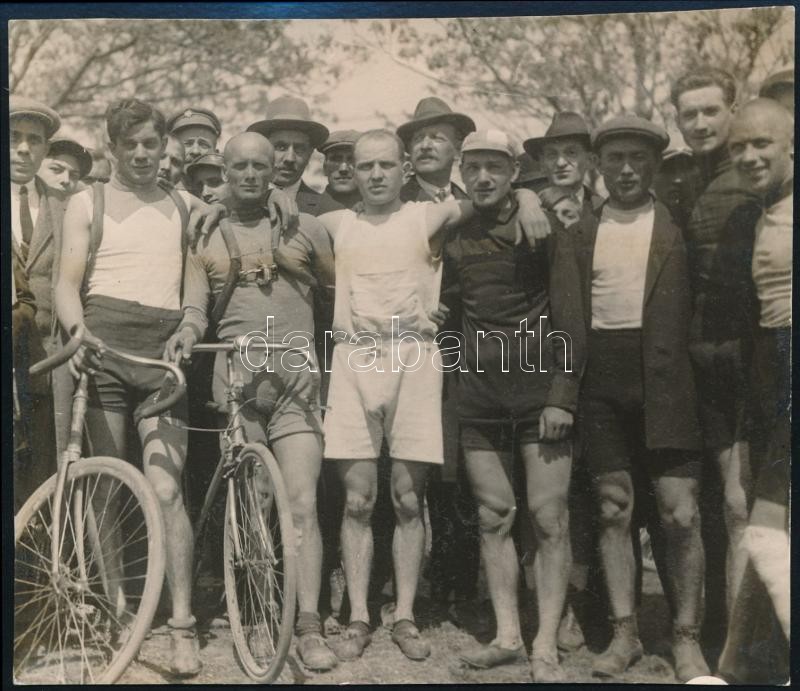 1924 Kerékpárversenyzők vintage csoportképe, 12,5x14 cm https://www.darabanth.com/de/302-Fernauktion/302.0/Andere-Sammelgebiete/Foto~20/1924-Kerekparversenyzok-vintage-csoportkepe-12-5x14-cm~II1620501