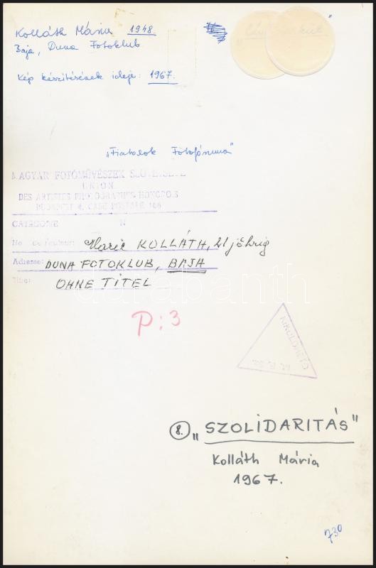 1967 A kortárs magyar fotográfia avantgarde korszakából Kolláth Mária:... https://www.darabanth.com/de/302-Fernauktion/302.0/Andere-Sammelgebiete/Foto~20/1967-A-kortars-magyar-fotografia-avantgarde-korszakabol-Kollath-Maria-Szolidaritas-c-vintag~II1620551