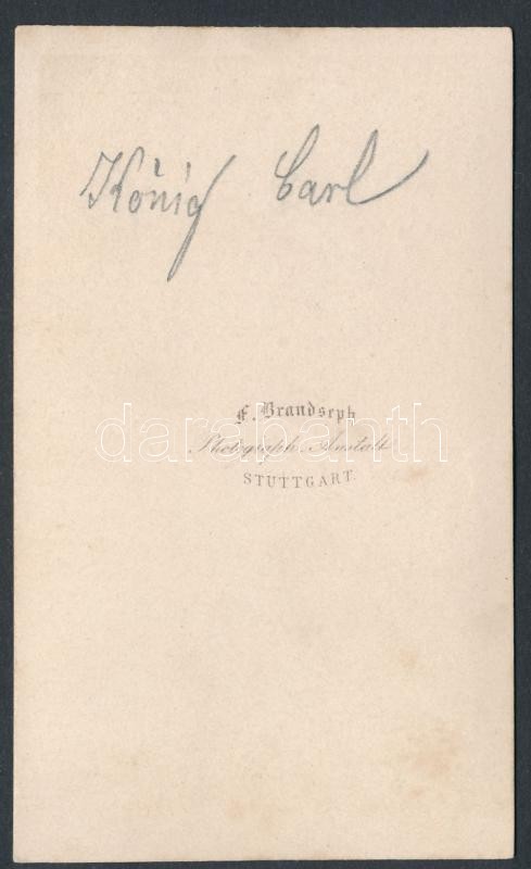 cca 1860 I. Károly württembergi király fotója, F. Brandseph, Stuttgart... https://www.darabanth.com/de/302-Fernauktion/302.0/Andere-Sammelgebiete/Foto~20/cca-1860-I-Karoly-wurttembergi-kiraly-fotoja-F-Brandseph-Stuttgart-6x10-cm--cca-1860-Char~II1468610
