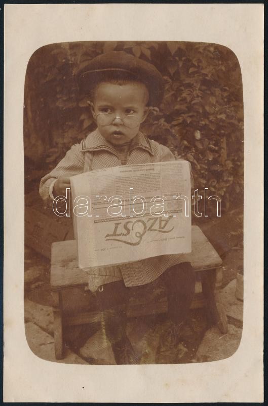 cca 1920-1930 Azt Est című újságot olvasó kisfiú, fotólap, 14x9 cm https://www.darabanth.com/de/302-Fernauktion/302.0/Andere-Sammelgebiete/Foto~20/cca-1920-1930-Azt-Est-cimu-ujsagot-olvaso-kisfiu-fotolap-14x9-cm~II1623463