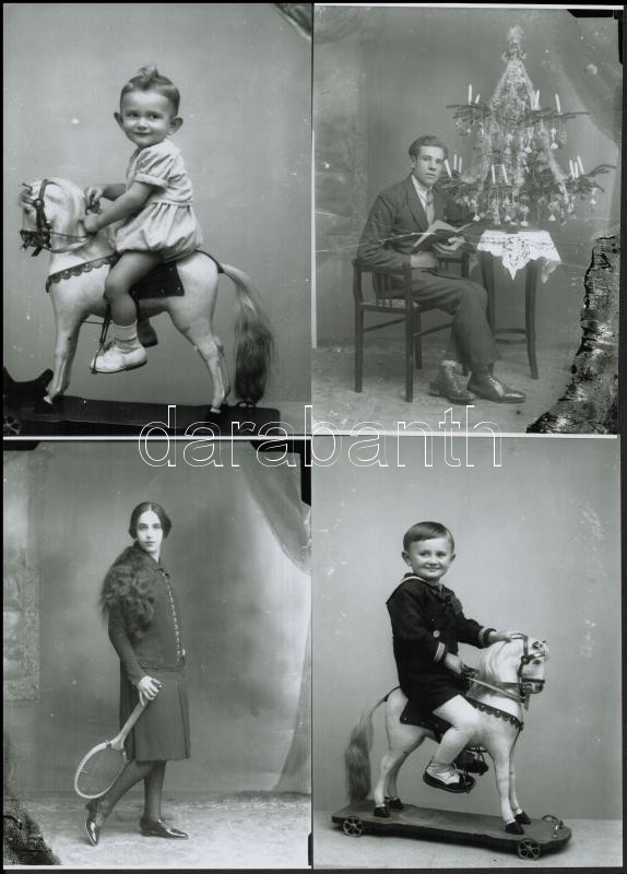 Beschreibung: cca 1926 Eger, a Foto-GRÁF műterem hagyatékában levő 13 db vintage üveglemez negatívról készült mai nagyítások, változatos témákról, 13x18 cm
