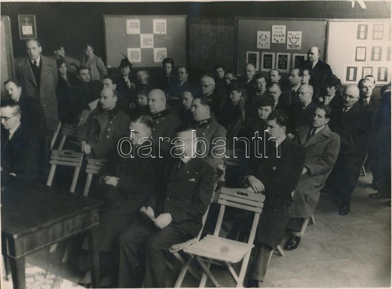 Beschreibung: cca 1930 filatéliai gyűlés, kiállítás, korabeli fotó, 17×23 cm