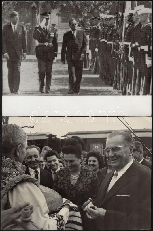cca 1960-1970 Sajtófotók, 11 db, rajtuk Tito-val, az egyiken Kádárral, J. F. K. Kenedy-vel, egy részük a hátoldalon feliratozva, egy a hátoldalán pecséttel jelzett, 18x24 cm.