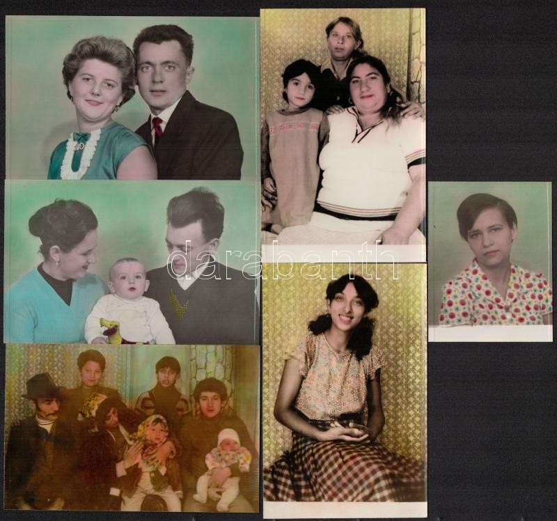 Beschreibung: cca 1960 Nagymágocsi színezett műtermi felvételek, 6 db vintage fotó Demeter Sándor szentesi fényképész hagyatékából, 8,5x6,5 cm és 9x14 cm