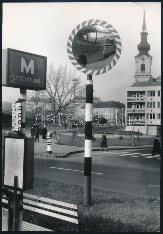 Beschreibung: cca 1970 Érkezik a villamos. Krisztina tér, villamos átszállóhely, fotó, 23,5×16,5 cm