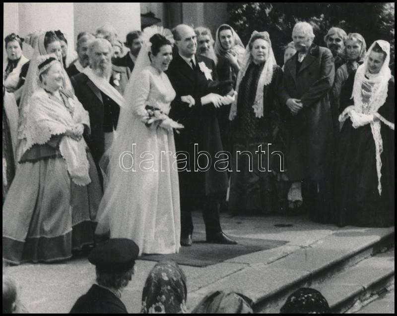 Beschreibung: cca 1970 Msztyiszlav Rosztropovics (1927-2007) gordonkaművész, karmester és Galina Visnyevszkaja operaénekesnő esküvője, 16x20 cm