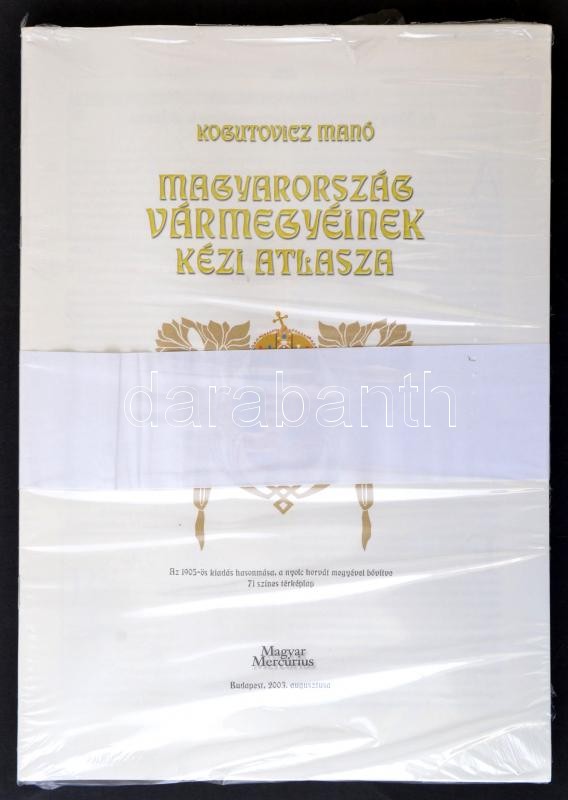 2003 Kogutovicz Manó: Magyarország vármegyéinek kézi atlasza. Bp., Magyar Mercurius. Kiadói zsugorfóliában, papírmappa nélkül. 1905-ös kiadás hasonmás kiadása.