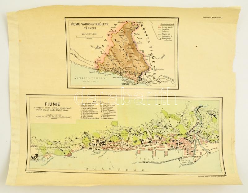 cca 1900-1910 Fiume város és területe, 1:75.000/ Fiume a magyar szent korona országainak részét képező önálló kikötő város, 1.19000. Bp., Magyar Földrajzi Intézet Rt., körbevágott szélekkel, az egyik szélén ragasztással,