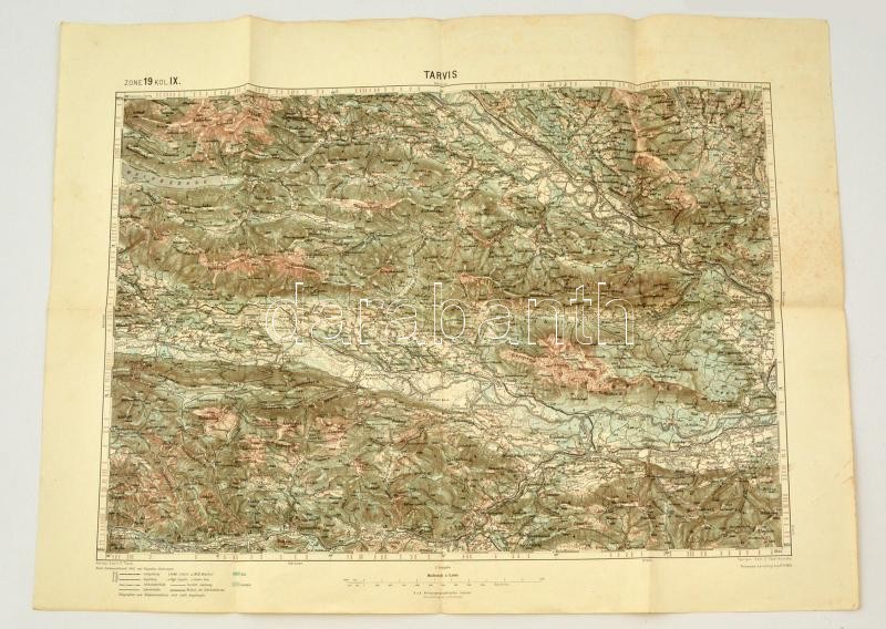cca 1913 Tarvis (Travisio) katonai térképe, 1:75.000, K.u.K. Militärgeographisches Institut, 48x61 cm./ cca 1913 Military map of Travis (Travisio), 1:75.000, K.u.K. Militärgeographisches Institut, 48x61 cm.
