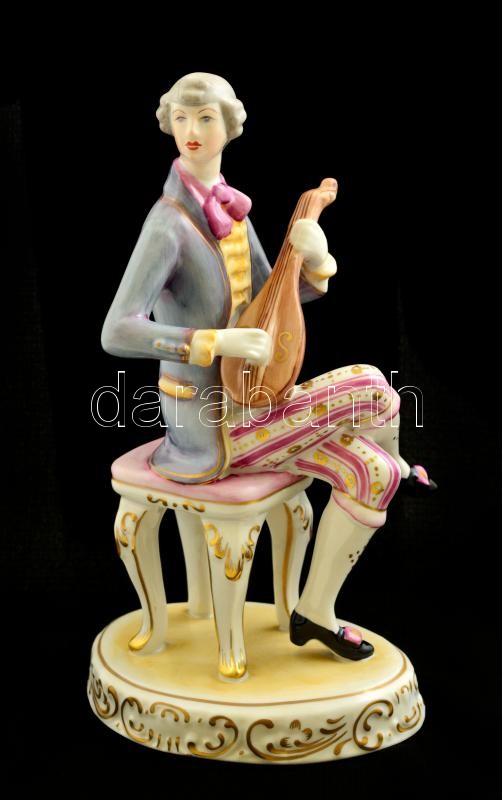Beschreibung: Hollóházi barokk férfi zenész porcelán figura, jelzett, kézzel festett, hibátlan, m: 21.5 cm.