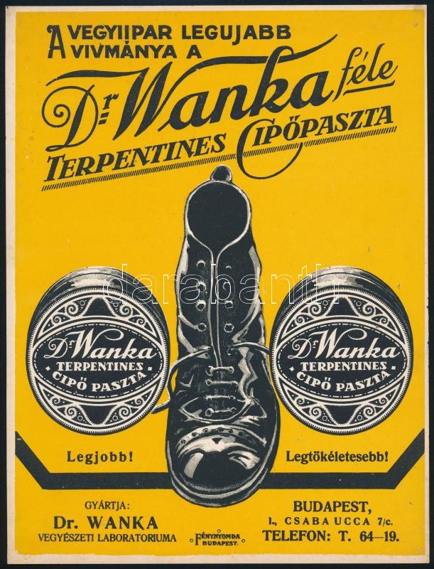 cca 1920 Dr. Wanka féle cipőpaszta karton kisplakát hibátlan állapotba... https://www.darabanth.com/de/302-Fernauktion/302.0/Andere-Sammelgebiete/Poster~29/cca-1920-Dr-Wanka-fele-cipopaszta-karton-kisplakat-hibatlan-allapotban-19x24-cm~II1626453