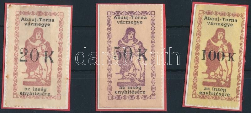 Beschreibung: 1923 Abaúj-Torna vármegyei ínségbélyeg 20K/50K/100K (8.600)