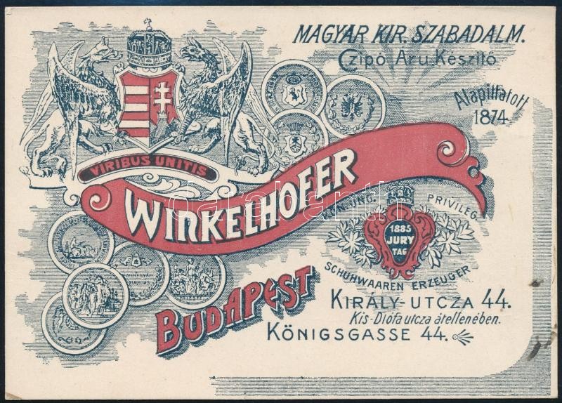1914 Budapest VII. Winkelhoffer cipőkészítő díszes reklám kártya, szám... https://www.darabanth.com/de/302-Fernauktion/302.0/Andere-Sammelgebiete/Werbungen~21/1914-Budapest-VII-Winkelhoffer-cipokeszito-diszes-reklam-kartya-szamla~II1622022