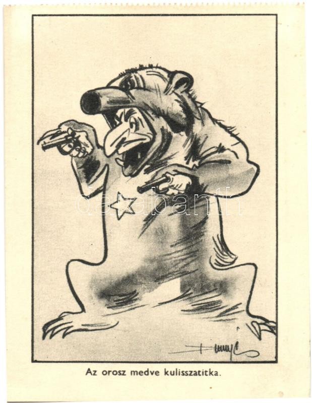 Az orosz medve kulisszatitka. 1919. Júniusi Bajtársak Szövetsége antibolsevista levelezőlap-sorozata / Anti-Semitic and Anti-Bolshevik propaganda art postcard. Judaica s: Dinnyés