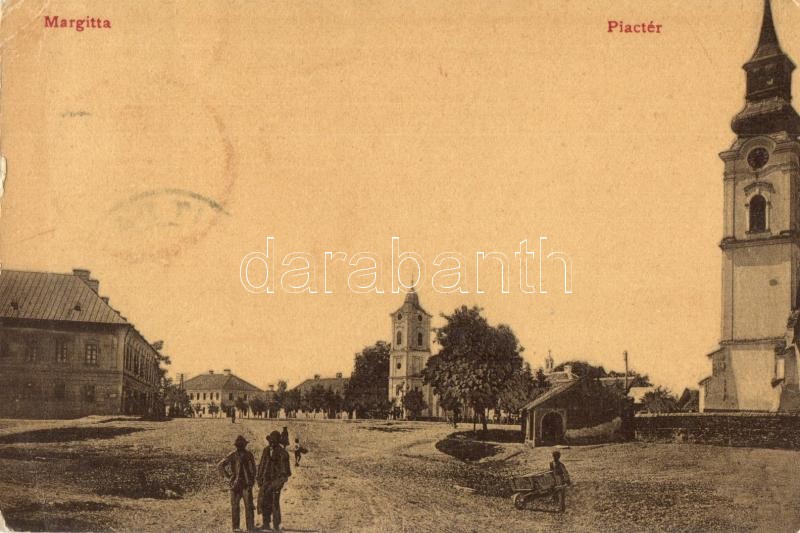 Beschreibung: Margitta, Marghita; Piac tér, templomok. Pichelmayer Ferenc kiadása / market square, churches (EK)