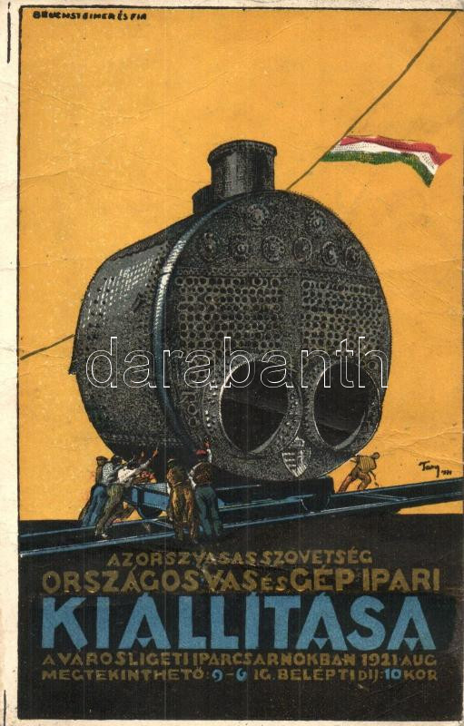 Beschreibung: 1921 Budapest, Az Orsz. Vasas Szövetség Országos Vas és Gépipari Kiállítása, reklám; Bruchsteiner és fia / Hungarian iron and machine industrial expo s: Tary (fa)