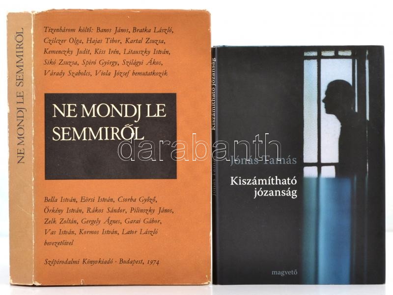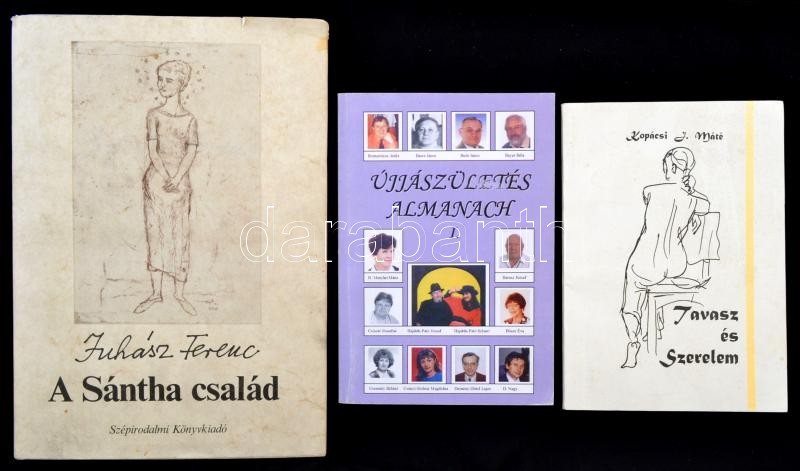 Vegyes könyv tétel, köztük aláírt példányok is: Kopácsi J. Máté: Tavasz és Szerelem. Juhász Ferenc: A Sántha család. Jónás Tamás: Kiszámítható józanság. Harcsás Judit-Vida Melinda: Boldogságkeresők. Újjászületés Almanach I. Tizenhárom költő bemutatkozik: Ne mondj le semmiről.