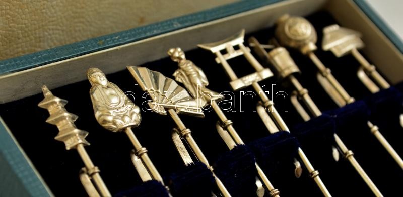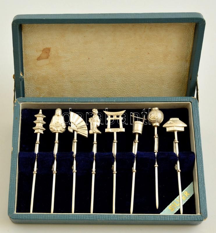 Beschreibung: Ezüst (Ag.) japán pohár jelzők ( 8db) eredeti dobozában, jelzett, h:6,5 cm (×), nettó: 22 g
