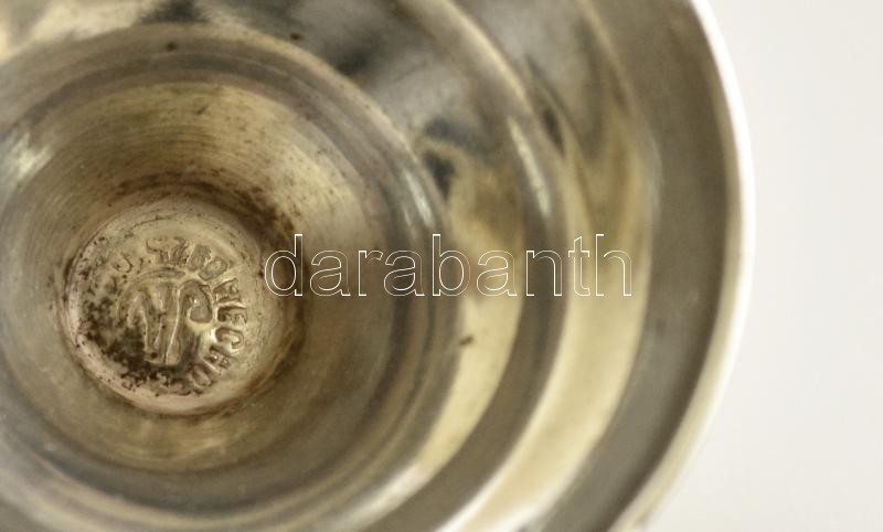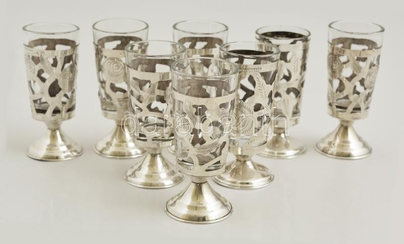 Beschreibung: Ezüst (Ag.)áttört falu kupicás poharak, üveg betéttel, jelzett, m:7 cm (8×), nettó: 39 g (összesen)