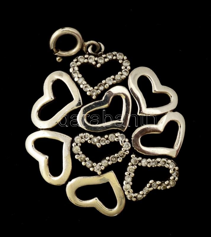 Beschreibung: Ezüst(Ag) szíves függő, apró szintetikus kövekkel, jelzett, d: 3,2 cm, bruttó: 6,9 g