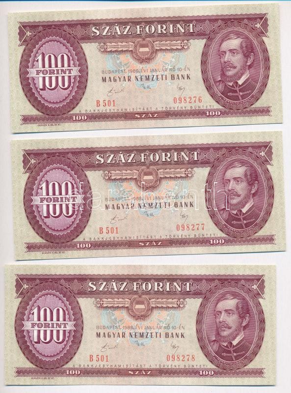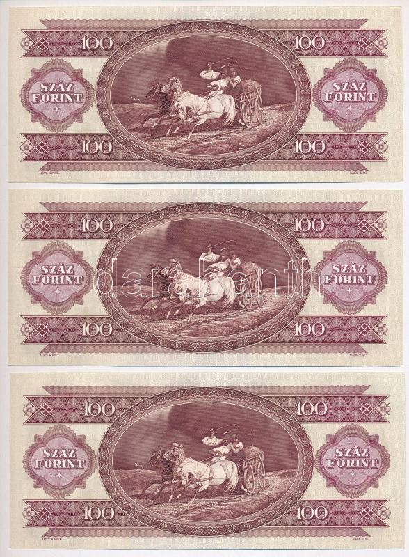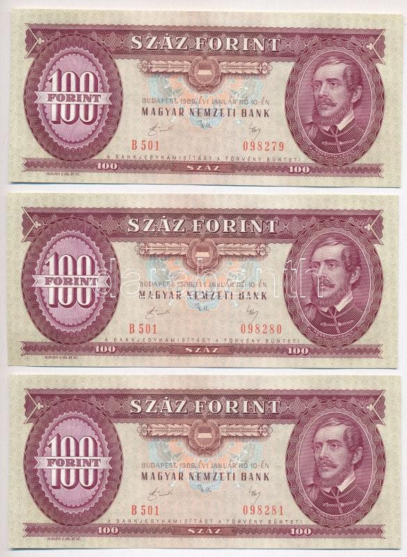 1989. 100Ft (7x) sorszámkövetők T:I,I- https://www.darabanth.com/de/302-Fernauktion/302.0/Numismatik/Ungarische-Banknoten~200022/1989-100Ft-7x-sorszamkovetok-TI-I-~II1623080