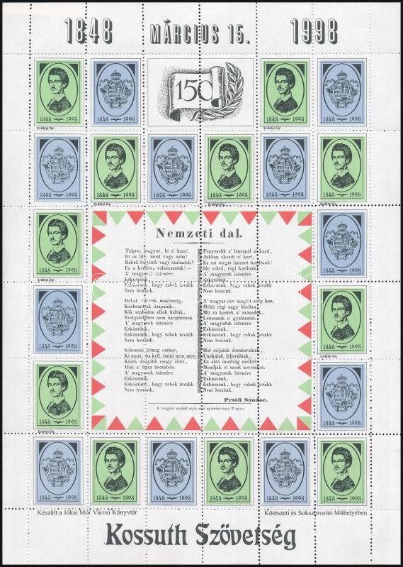 1998 1848. március 15. 150. évfordulója levélzáró teljes ív https://www.darabanth.com/de/303-Fernauktion/303.0/Andere-Sammelgebiete/~36/1998-1848-marcius-15-150-evforduloja-levelzaro-teljes-iv~II1631107