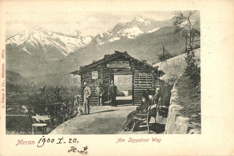 Merano, Meran (Südtirol); Am Tappeiner Weg / rest house on the mountai... https://www.darabanth.com/de/303-Fernauktion/303.0/Ansichtskarten/Italien~200053/Merano-Meran-Sudtirol-Am-Tappeiner-Weg-rest-house-on-the-mountain~II1595326