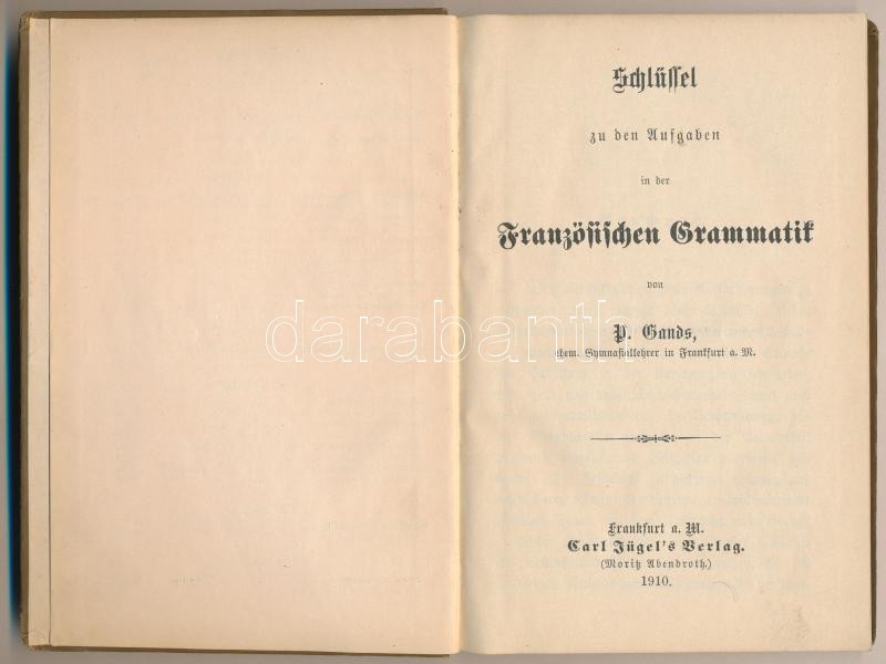 P. Gands: Schlüssel zu den Aufgaben in der Französische Grammatik. Frankfurt a. M., 1910, Collection Jügel. Kiadói egészvászon kötésben. / In German and French, cloth binding.