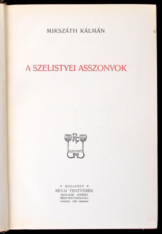 Mikszáth Kálmán: A szelistyei asszonyok. Bp., 1906, Révai. Gazdagon dí... https://www.darabanth.com/de/303-Fernauktion/303.0/Bucher/Bucher-Andere-kuriositaten~500016/Mikszath-Kalman-A-szelistyei-asszonyok-Bp-1906-Revai-Gazdagon-diszitett-vaszonkotesbe~II1630566