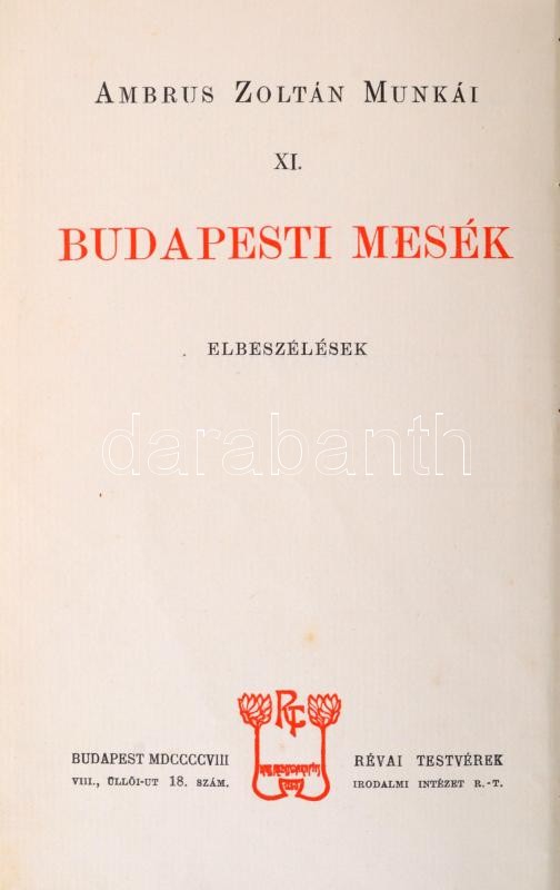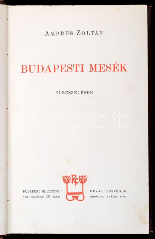 Ambrus Zoltán: Budapesti mesék. Bp., 1908, Révai. Kicsit kopott vászonkötésben, egyébként jó állapotban.