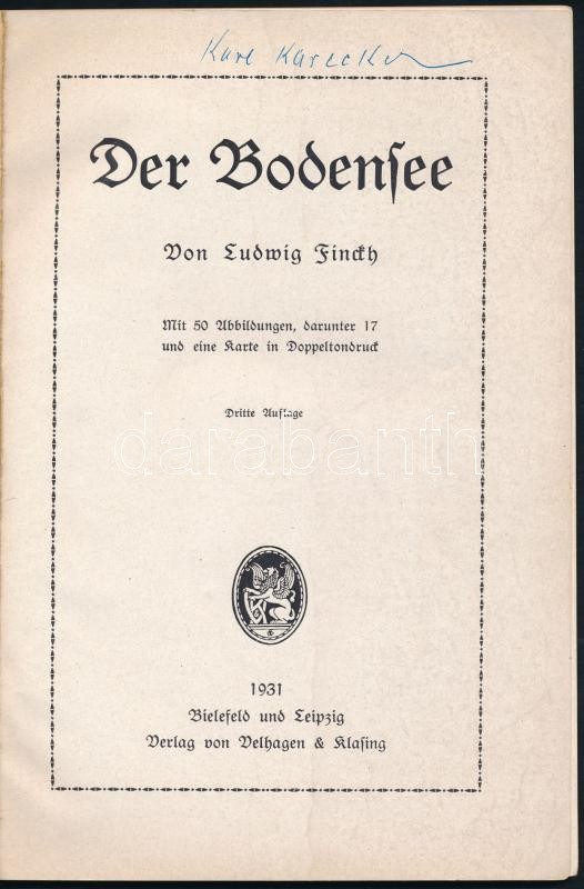 Ludwig Finckh: Der Bodensee. Bielefeld-Leipzig, 1931, Velhagen&Klasing. Harmadik kiadás. Kiadói papírkötés, német nyelven. / Paperbinding, in German language.