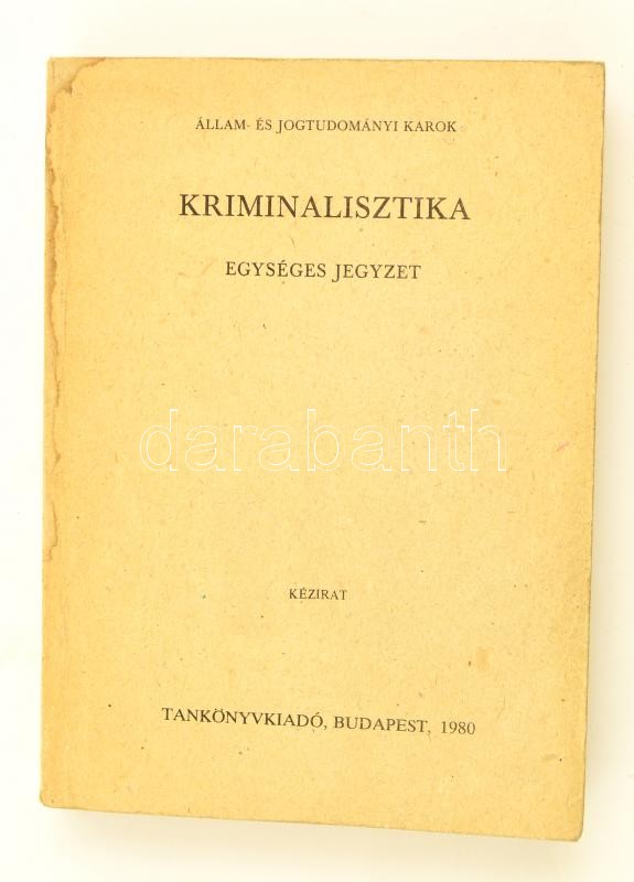 Kriminalisztika. Egységes jegyzet. Bp., 1980, Tankönyvkiadó. 11., vált... https://www.darabanth.com/de/303-Fernauktion/303.0/Bucher/Bucher-Sozialwissenschaften~500010/Kriminalisztika-Egyseges-jegyzet-Bp-1980-Tankonyvkiado-11-valtozatlan-utannyomas-Kiad~II1629601