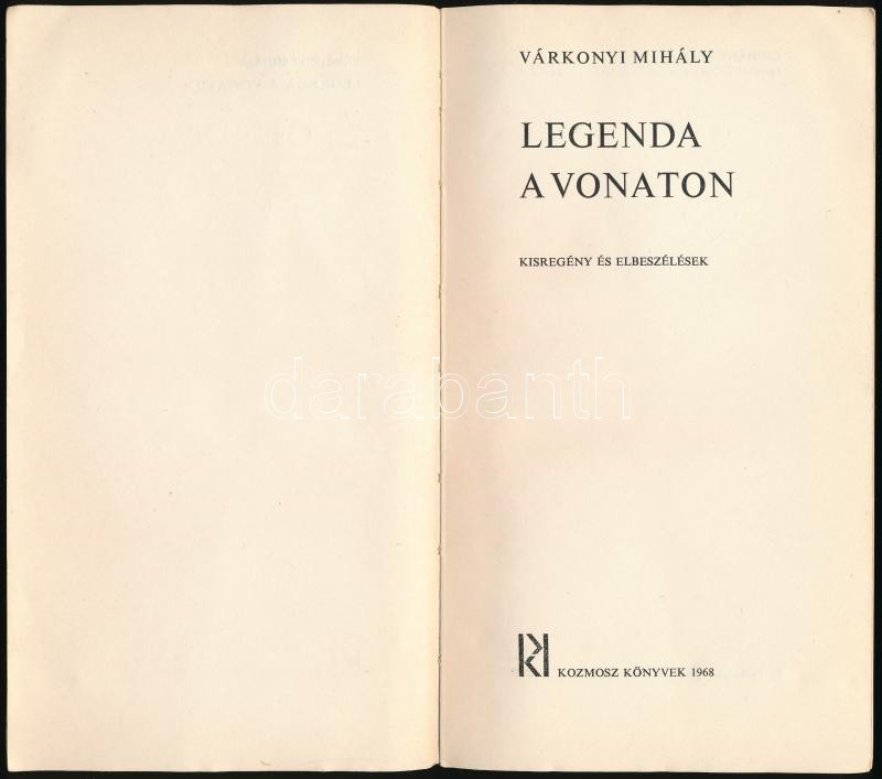 Várkonyi Mihály: Legenda a vonaton. Bp.,1968, Kozmosz. Kiadói papírköt... https://www.darabanth.com/de/303-Fernauktion/303.0/Bucher/Bucher-und-Dokumente-mit-gunstigem-Preis~500017/Varkonyi-Mihaly-Legenda-a-vonaton-Bp-1968-Kozmosz-Kiadoi-papirkotes-deformalodott-geri~II1630361